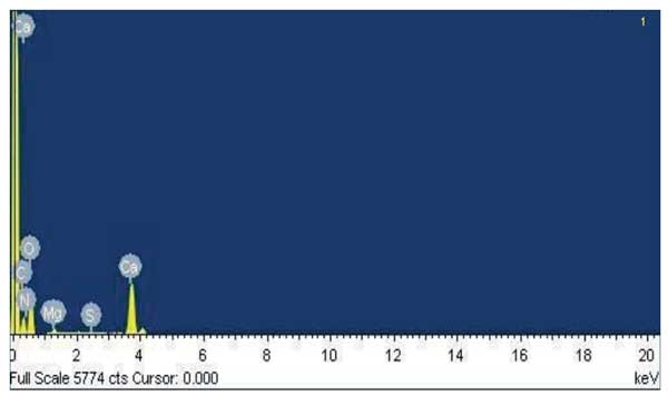 ¡¡¡¡»îÐÔÌ¿µÄ±íÃæ»¯Ñ§³É·ÖÊÇͨ¹ýʹÓÃÄÜÁ¿É«É¢XÉäÏß(EDX)¹âÆ×È·¶¨µÄ¡£µÃµ½µÄ¹âÆ×¼ûͼ2£¬C¡¢N¡¢0¡¢Mg¡¢CaµÄ°Ù·Ö±È·Ö±ðΪ7.64%¡¢14.53%¡¢35.31%¡¢0.70%¡¢41.80%¡£FTIR½á¹ûÖ§³ÖC¡¢NºÍOµÄ´æÔÚ£¬¸Ã½á¹û±íÃ÷´æÔÚôÊ»ùºÍ°·»ùÍÅ¡£³ý´ËÖ®Í⣬¸ß°Ù·Ö±ÈµÄCa±íÃ÷Ö÷ÒªÊǸƵÄÐÔÖÊ¡£´ËÍ⣬¹âÆ×ÖгöÏÖMg±íÃ÷Mg»¯ºÏÎïÓë̼ºÍÑõÇ¿ÁÒ½áºÏ¡£Òò´Ë£¬ÎÞÂÛÊÇÓÃÈÈÕôÁóË®»¹ÊÇÀäÕôÁóË®£¬¶¼²»ÈÝÒ×ͨ¹ýÏ´µÓÈ¥³ý¡£