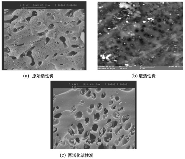 ¡¡¡¡Í¼3£º(a)Ôʼ»îÐÔÌ¿(b)·Ï»îÐÔÌ¿ºÍ(c)ÖØÐ»µÄÌ¿µÄɨÃèµç×ÓÏÔ΢¾µ(SEM)ͼÏñ¡£