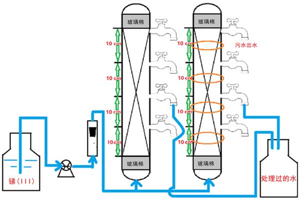 ¡¡¡¡ÎÒÃǽøÐÐÁËÉ«Æ×ÖùʵÑ飬ÒÔÁ˽âÈõ´Å³¡ÊÇ·ñ¿ÉÓÃÓÚÌá¸ßÁ¬ÐøÁ÷¶¯ÏµÍ³ÖÐÄÉÃ×¼¶Áã¼ÛÌúµÄ·´Ó¦ÐÔ¡£ÉèÖÃÁËÁ½¸öƽÐеÄÁ¬ÐøÖùϵͳ£¬ÄÚ¾¶Îª10mm(Íâ¾¶=14mm)£¬¸ß¶ÈΪ200mm£¬Èçͼ1Ëùʾ¡£Ò»¸öÖùϵͳÓÐһϵÁл·ÐÎÓÀ´ÅÌ壬×î´ó´Å³¡Í¨Á¿Ç¿¶ÈԼΪ1800Gs(²ÄÁÏ£ºîÏÌúÅð)£¬Ã¿5.0ÀåÃ×·ÅÖÃÒ»¸ö»·ÐδÅÌú¡£¾Û¼×»ù±ûÏ©Ëá¼×õ¥ÖùÌî³äÓÐ10gÌúÓë»îÐÔÌ¿(10-20Ä¿)µÄ»ìºÏÎï¡£ÖùµÄÁ½¶ËÓÃһС¿é²£Á§ÃÞÈûס¡£Í¼1ÃèÊöÁËÉ«Æ×Öù×é¼þºÍÓëÖ®ÅäÌ×µÄʵÑéÉè¼Æ¡£²âÊÔÊÇÔÚ25±1¡æÏÂÍê³ÉµÄ¡£ÎªÁË»ñµÃºÏÊʵÄÁ÷ËÙ£¬Ê¹ÓÃÁËÈ䶯±Ã¡£Ìà(III)Àë×ÓÈÜҺͨ¹ýÌú¸ÄÐÔ»îÐÔÌ¿´²ÏòÉÏ×ªÒÆ£¬ÒÔÈ·±£´²ÍêÈ«±¥ºÍ¡£ÎªÁËÆÀ¹ÀÌà(III)Îü¸½È¥³ýÇé¿ö£¬¶¨ÆÚ²É¼¯Á÷³öÎïÑùÆ·¡£