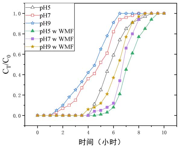 ¡¡¡¡Îü¸½½éÖÊpHÖµÊǵ÷½ÚÎü¸½ÄÜÁ¦µÄ×î¹Ø¼üÒòËØ¡£Îü¸½¼ÁÎü¸½Î»µãÖеÄÎïÖÊÓëÈÜÒºÖ®¼äÏ໥×÷ÓÃ(ÎïÀí»¯Ñ§)µÄÐÔÖÊ·´Ó³ÔÚÎü¸½½éÖʵijõʼpHÖµÉÏ£¬ÕâÓë´ÓË®Îü¸½µ½Îü¸½¼Á±íÃæµÄ»úÀíÓйء£ÔÚ±£³ÖÏàͬÁ÷ËÙ¡¢´²¸ßºÍ³õʼŨ¶ÈµÄÇé¿öÏ£¬Ñо¿Á˲»Í¬pHˮƽ(pH5ÖÁpH9)ÏÂpH¶Ô´©Í¸Ê±¼äµÄÓ°Ïì¡£