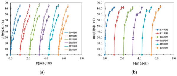 ¡¡¡¡Í¼4£ºÊ¹ÓûîÐÔÌ¿´ß»¯¼ÁÔÚÁù¸öÖØ¸´Ñ»·ÄÚ¶Ô±½°·ºÍ±½²¢àçßò½øÐйâ´ß»¯½µ½âµÄ¿ÉÖØ¸´Ê¹ÓÃÐÔ²âÊÔ¡£(a)±½°·ºÍ±½²¢àçßòµÄ³õ¼¶½µ½â(b)¿ó»¯¡£