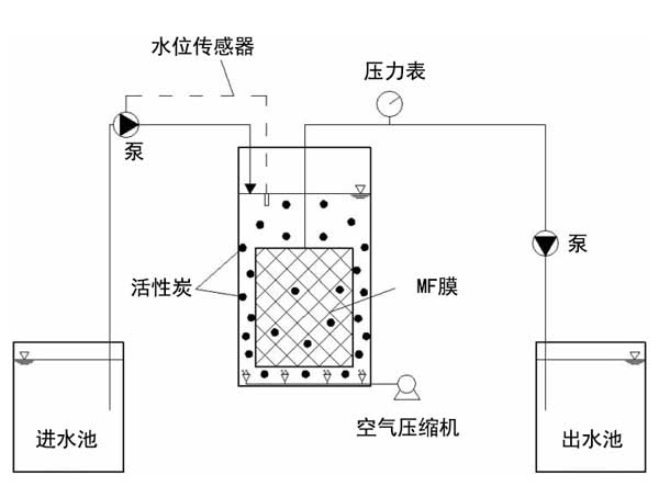 ¡¡¡¡Í¼1£ºÊµÑéÊÒ¹æÄ£µÄ½þûʽĤ¹ýÂËϵͳʾÒâͼ¡£