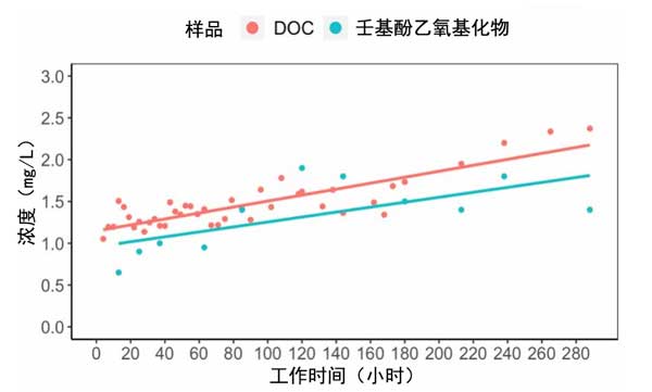 ¡¡¡¡Í¼3£ºÔËÐÐÆÚ¼äÉøÍ¸ÒºÖÐDOCºÍÈÉ»ù·ÓÒÒÑõ»ù»¯ÎïŨ¶ÈµÄ±ä»¯¡£