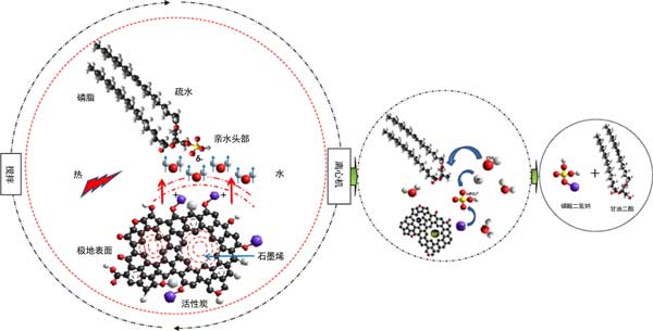 ¡¡¡¡ÈÈÄÜÒÔ¼°Ë³´ÅµÄÓ°ÏìË®£¬Æä½µµÍË®·Ö×ÓÄÜÁ¿£¬¼õÈõÁ˹²¼Û¼üµÄË®¡£Òò´Ë£¬»áÊÍ·ÅһЩH+Àë×ÓºÍOH-Àë×Ó¡£ÕâЩH+Àë×ÓÒÔ¼°À´×Ô»îÐÔÌ¿µÄNa+Àë×Ó½«Óë·ÖÀëµÄÁ×Ëá¸ù»ùÍŽáºÏ£¬ÐγÉÁ×Ëá¶þÇâÄÆ(NaH2PO4)¡£¶øOH-Àë×Ó»áÓëÓ͵ĸÊÓͲ¿·Ö½áºÏÐγɸÊÓͶþõ¥¡£¸ÊÓͶþõ¥»áÒÆ¶¯µ½ÓÍÏ࣬¶øÁ×Ëá¶þÇâÄÆ»áÒÆ¶¯µ½Ë®ÏàÐγÉÈéҺ״¾Û¼¯Ìå(ͼ3)¡£Á×Ö¬¡¢Ë®ºÍ»îÐÔ֮̿¼äµÄÕâÖÖÏ໥×÷ÓûúÖÆÓë¼î´Ù½øõ¥Ë®½âÒ»Ö£¬ÒòΪÔÚÓÍÍѽº¹ý³ÌÖУ¬ÔÚÆä±í²ãÌí¼Ó¾ßÓÐO-Na+¼üµÄ»îÐÔÌ¿Éæ¼°NaÀë×Ó·´Ó¦¹ý³Ì¡£Ïà±È֮ϣ¬Ö²ÎïÓ͵ÄË®Íѽº×ñѼòµ¥µÄË®½â·´Ó¦£¬ÆäÖÐÁ×Ö¬·Ö×ÓÓëË®·Ö×Ó·´Ó¦Éú³É¸ÊÓͶþõ¥ºÍÁ×Ëáõ¥¡£