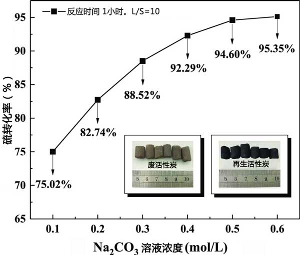 ¡¡¡¡Na2CO3Ũ¶È¶Ô·Ï»îÐÔÌ¿Áòת»¯ÂʵÄÓ°Ïì