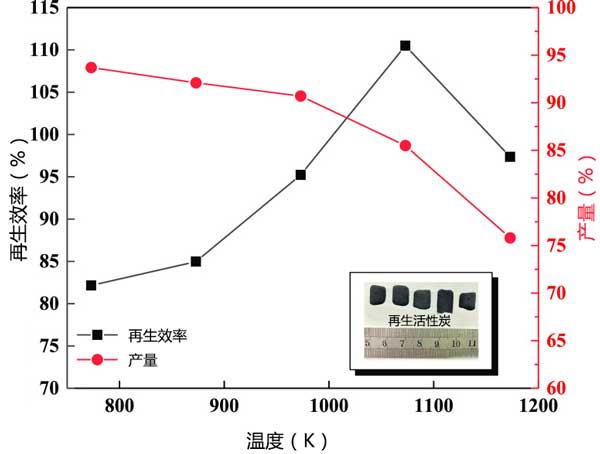¡¡¡¡·Ï»îÐÔÌ¿ÔÚNa2CO3ÈÜÒººÍHFÈÜÒº´¦Àíºó¾ßÓÐÁ¼ºÃµÄÎü¸½ÐÔÄÜ¡£È»¶ø£¬Ö¯¹¹ÌØÐԵĻָ´²¢²»ÏÔ×Å£¬·Ï»îÐÔÌ¿µÄ΢¿×ÂÊÕ¼×Ü¿×϶ÂʵİٷֱȵÍÓÚ»îÐÔÌ¿¡£CO2»î»¯´¦Àí¿ÉÒÔ¸ÄÉÆ·Ï»îÐÔÌ¿µÄÖʹ¹ÌØÐÔ£¬Ìá¸ßÍÑÁòÄÜÁ¦¡£»î»¯Î¶ȶԷϻîÐÔÌ¿ÔÙÉúЧÂʺͲúÂʵÄÓ°ÏìÁÐÓÚͼ4¡£Ëæ×ŻζȴÓ500¡æÌá¸ßµ½800¡æ£¬ÔÙÉúЧÂÊ´Ó82.15%Ìá¸ßµ½110.5%£¬²úÂÊÖð½¥Ï½µ¡£ÕâÊÇÒòΪ»îÐÔÌ¿ÔÚ¸ßÎÂÏÂÓëCO2·´Ó¦Ê¹ÔÊ¼Ì¼ÖØÐ»£¬½øÒ»²½·¢Õ¹ÁË»îÐÔÌ¿µÄ×èÈû¿×϶¶È²¢²úÉúÁËеĿ×϶¡£È»¶ø£¬µ±Î¶ÈΪ900¡æÊ±£¬ÔÙÉúЧÂÊÑÏÖØÏ½µµ½97.35%¡£Õâ¿ÉÄÜÊÇÓÉÓڻ·´Ó¦µÄ¼ÌÐøÔöÇ¿»áµ¼ÖÂÔÓеĿ׽ṹ±»ÆÆ»µ£¬²¿·Ö΢¿×ËúÏÝΪÖпס£