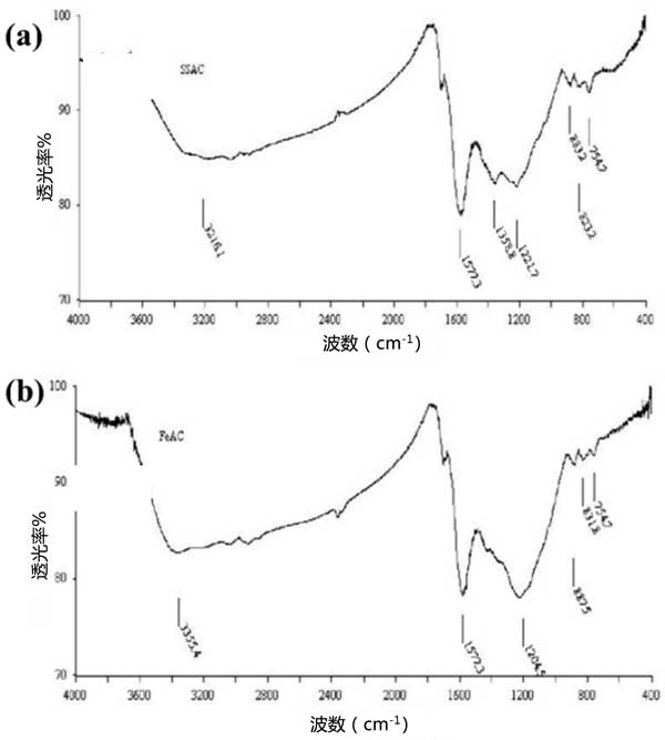 ¡¡¡¡Í¼2£º(a)»îÐÔÌ¿ºÍ(b)¸ÄÐÔ»îÐÔÌ¿µÄFTIR¹âÆ×¡£