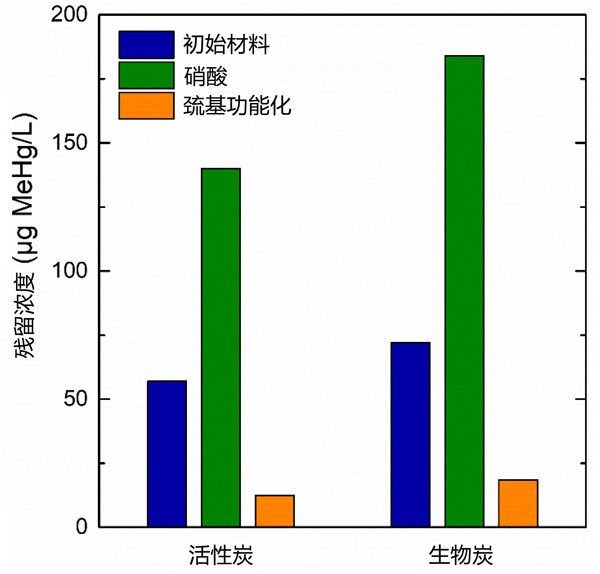 ¡¡¡¡Í¼2£ºÏàͬʵÑéÌõ¼þÏ»îÐÔÌ¿ºÍÉúÎïÌ¿¸ÄÐÔ¹ý³ÌÖÐÿһ²½µÄMeHg²ÐÁôŨ¶È¡£