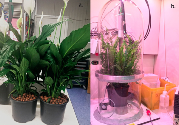 为测试选择了三种不同的介质:活性炭和膨胀粘土、土壤。选定的植物盆栽土壤由泥炭、绿色堆肥、石灰和肥料组成。基材的选择基于之前的研究,因为它们是市场上常见的基材。对于每种类型的基材,进行了六项测试:三项使用干基材,三项使用湿基材。将基板分别放入塑料容器中,即基板的暴露区域。测试了两种不同的植物(图1)。每种植物选择3株进行试验,并选择具有相似年龄和大小特征的植物。