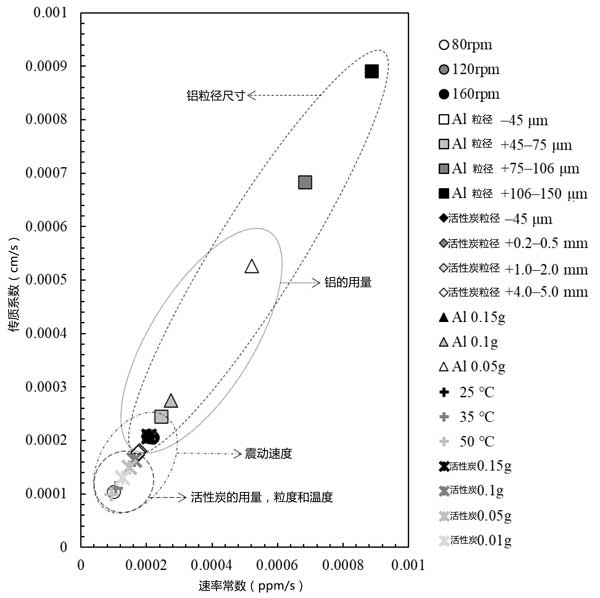 图3:基于本研究中所有黄金回收结果的速率常数和传质系数图。