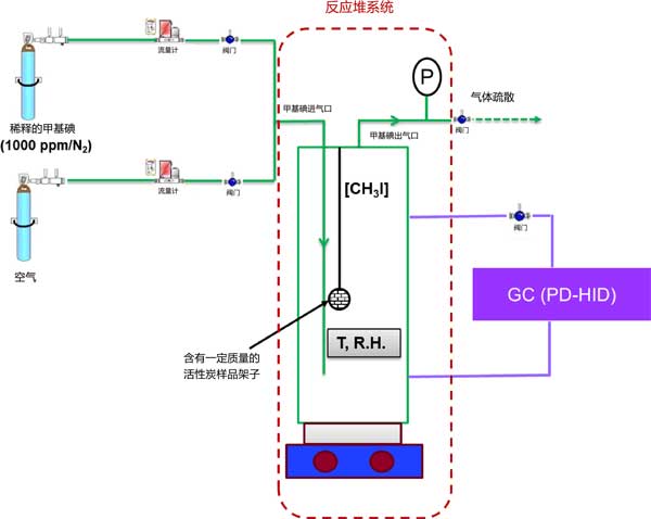 ¡¡¡¡Ê¹ÓÃʵÑé×°ÖÃ(ͼ1)ÔÚ²»Í¬Ìõ¼þϽøÐÐÅú´ÎCH3IÎü¸½²âÊÔ£¬¿É·ÖΪÈý¸ö²¿·Ö£ºµÚÒ»²¿ÓÃCH3I/N2Æ¿¿ÕÆø²úÆ·ºÍÖÊÁ¿Á÷Á¿¿ØÖÆÆ÷(ʹÓÃ¿ÕÆø×÷ΪϡÊÍÆøÌå)ÖÐÉú³Éºã¶¨ÇÒ¿ÉÖØÏÖµÄCH3IŨ¶È¡£µÚ¶þ²¿·Ö³ÆÎª“·´Ó¦Æ÷ϵͳ”(²Î¼ûͼ1)£¬ÆäÖÐÔÚ¸÷ÖÖÌõ¼þ(ζÈ(T)ºÍÏà¶Ôʪ¶È(RH))Ï£¬¸ø¶¨µÄCH3IŨ¶ÈÓë¹Ì¶¨µÄ»îÐÔÌ¿ÖÊÁ¿±£³Ö½Ó´¥¡£¸ù¾ÝËùÐèÐÅÏ¢(Îü¸½¶¯Á¦Ñ§/Îü¸½µÈÎÂÏß)£¬Õⲿ·Ö¿ÉÒÔʹÓÃÒ»¸ö·´Ó¦Æ÷»ò¶à¸ö·´Ó¦Æ÷¡£×îºóÒ»²¿·ÖרÃŽéÉܼì²â·½·¨¡£ËüÆøÏàÉ«Æ×ÒǺÍÂö³å·Åµçº¤Àë×Ó»¯¼ì²âÆ÷×é³É¡£ÓÅ»¯·ÖÎö²ÎÊýÒÔÈ·±£ÏÔ×ŵÄÐÅÔë±ÈºÍ×ã¹»µÄʱ¼ä·Ö±æÂÊÒÔ¾«Ï¸¼à²âCH3I¶¯Á¦Ñ§Ë¥¼õ¡£