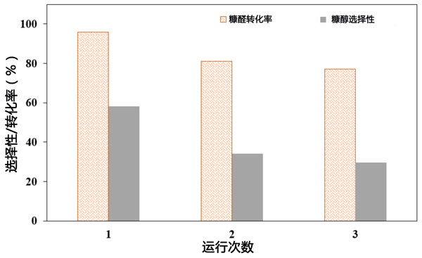 ¡¡¡¡Í¼3£ºÊ¹ÓÃÔØÌú²¬»îÐÔÌ¿´ß»¯¼Á½«¿·È©×ª»¯Îª¿·´¼µÄ´ß»¯¼Á¿É»ØÊÕÐÔ¡£