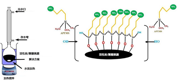 ¡¡¡¡ÎªÁ˸ÄÐÔ»îÐÔÌ¿µÄ±íÃæ£¬½«15g·Ç³£Ï¸µÄ¸ÉÔï»îÐÔÌ¿·ÛÄ©Óë300mL¼×±½ºÍ2mL°±±û»ùÈý¼×Ñõ»ù¹èÍé(APTMS)ÈÜÒºÔÚ´ÅÁ¦½Á°èÏÂÔÚ40¡æ¶èÐÔ»·¾³Ï»ìºÏ24Сʱ¡£Í¼1±íʾʵÑé×°ÖõÄʾÒâͼ¡£Ê¹ÓÃʵÑéÊÒÐýתÕô·¢ÒÇÈ¥³ýÈܼÁ¡£Óüױ½ºÍ±ûͪ½øÒ»²½Ï´µÓËùµÃµÄAPTMS»îÐÔÌ¿£¬È»ºóÔÚ60¡æÏÂÕæ¿Õ¸ÉÔï6Сʱ¡£ÕâÖÖ¸ÉÔïµÄ»îÐÔÌ¿±»³ÆÎª¸ÄÐÔ»îÐÔÌ¿£¬ÓɱíÃæÉϵİ·¹ÙÄÜÍÅ×é³É¡£¸ÄÐÔ»îÐÔÌ¿ÔÚ¸ÉÔïÌõ¼þÏ´¢´æÒÔÓÃÓÚºóÐøµÄʵÑ鹤×÷¡£