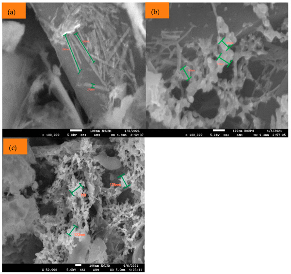 ¡¡¡¡Í¼1£ºÑùÆ·µÄ´ú±íÐÔFESEMͼÏñ¡£(a)Mn(0.5%)-Mo(0.1%)/»îÐÔÌ¿,(b)Mn(0.5%)-Mo(0.5%)/»îÐÔÌ¿ºÍ(c)Mn(0.5%)-Mo(1%)/»îÐÔÌ¿ÕâÈýÖÖ´ß»¯¼Á¡£