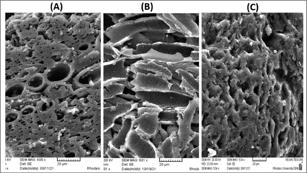 ¡¡¡¡Í¼1£º(A)»îÐÔÌ¿¿ÅÁ£¡¢(B)Ñõ¹ÙÄÜ»¯»îÐÔÌ¿¿ÅÁ£ºÍ(C)»îÐÔÌ¿ÔØß²ßøµÄSEMͼÏñ¡£