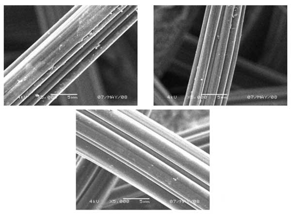 ¡¡¡¡»îÐÔÌ¿ÏËάµÄSEMͼÏñÈçͼ1Ëùʾ¡£»îÐÔÌ¿-0µÄ±íÃæ¿´ÆðÀ´ºÜ¹â»¬£¬±íÃæµÄ°ßµãÊÇÎü¸½µÄÎÛ¹¸¡£»îÐÔÌ¿-HNO3±íÃæµÄÎÛ¹¸×îÉÙ£¬´ó²¿·ÖÎÛ¹¸ÔÚÏõËá½þ×Õ¹ý³ÌÖб»½þ³ö¡£ÕâҲ˵Ã÷ÏõËáÑõ»¯²»»áËðÉËÏËά±íÃæ¡£»îÐÔÌ¿±íÃæµÄÎÛȾ±È»îÐÔÌ¿-0ÉÙ£¬ÔÚÏõ»¯ÏËά½þ×Õ¹ý³ÌÖУ¬Ò»Ð©ÔÓÖʱ»Ï´µô£¬Õâ±íÃ÷ËùÓеÄÏõ»¯ÏËÎ¬ËØ¶¼ÒÑÍêȫȼÉÕ¡£Í¨¹ý±È½ÏSEMͼÏñ£¬»îÐÔÌ¿ÏËά±íÃæÔÚÏõËáÑõ»¯ºÍÏõ»¯ÏËÎ¬ËØÈ¼ÉÕºóûÓб»ÆÆ»µ¡£ÕâÖ¤Ã÷ÁËÔÚ»îÐÔÌ¿ÏËά±íÃæÒýÈ뵪/ÑõÔ×ÓÊÇÒ»ÖÖ¼òµ¥µÄ·½·¨£¬²¢ÇÒ²»»á¶Ô±íÃæÔì³ÉËðÉË¡£