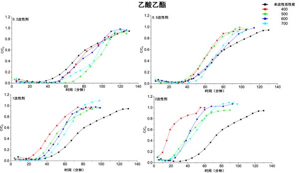 ¡¡¡¡Í¼3£º¸ÄÐÔ»îÐÔÌ¿Îü¸½ÒÒËáÒÒõ¥µÄÍ»ÆÆÇúÏß¡£