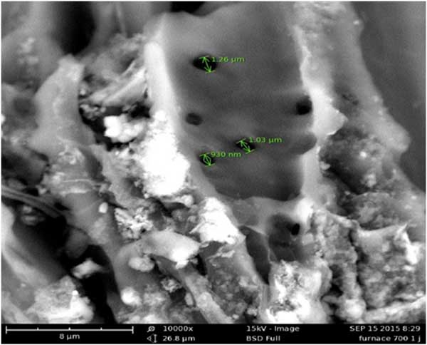 ¡¡¡¡ÓÉÓÚÉÏÊöÌÕ´ÉĤȥ³ýÎÛȾÎïµÄ¶àÖØÓÅÊÆºÍÓÐǰ;µÄÌØÐÔ£¬·ÖÎöÌÕ´ÉĤÖв»Í¬»îÐÔÌ¿ºÍÑõ»¯Ìú·ÛÄ©º¬Á¿µÄÓ°Ï졣ʹÓÃɨÃèµç×ÓÏÔ΢¾µÑо¿»îÐÔÌ¿²ÄÁϵÄ΢¹Û½á¹¹¡£Í¼1Ãè»æÁËʹÓÃZnCl2/50vol%ÔÚ10,000±¶·Å´ó±¶ÊýÏ»ºóµÄ»îÐÔÌ¿µÄ¿×϶¡£·¢ÏÖ»îÐÔÌ¿µÄ¿×¾¶ÏÔʾ³ß´ç·¶Î§ÔÚ0.93μm–1.26μmÖ®¼ä¡£