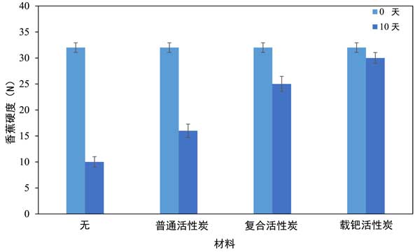 图2:活性炭材料对香蕉贮藏10天后硬度变化的影响。