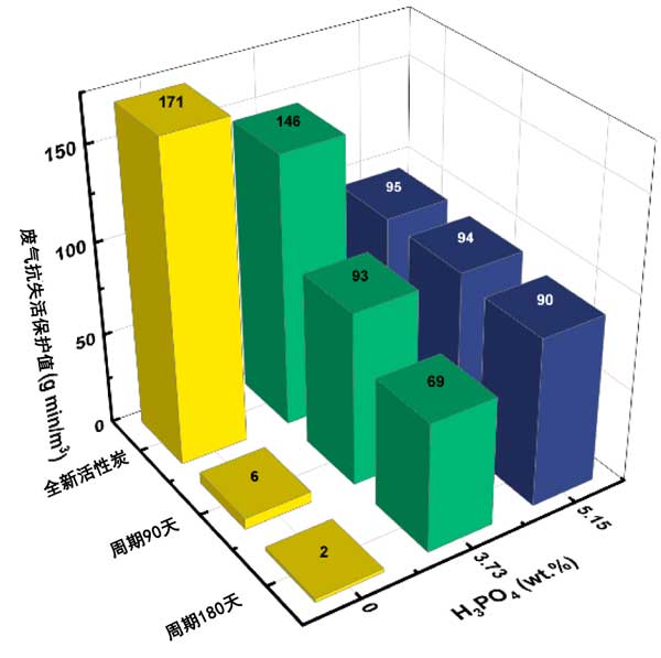 ¡¡¡¡ÔÚʵÑéÌõ¼þÏ»îÐÔÌ¿¼ÓËÙʧ»î3¸öÔºÍ6¸öÔ£¬¶Ô±È³£Ì¬ÏµĸÄÐÔ»îÐÔÌ¿¶Ô¿¹·ÏÆøµÄЧ¹û·Ö±ð½µµÍÁË59-89%ºÍ>75%¡£Á×ËáÑεÄÌí¼ÓÒÖÖÆÁË»îÐÔÌ¿µÄʧ»î£¬Ê§»î3-6¸öÔºó·À»¤Öµ½öϽµ17~23%ºÍ32~37%¡£Ò»°ãÀ´Ëµ£¬ÓëÕý³£Çé¿öÏà±È£¬±£»¤ºóµÄ»îÐÔÌ¿¿ÉÒÔÌá¸ßÎü¸½Ê±³¤¡£ÆäÔÒòÊÇʧ»îºó£¬ÌرðÊÇÔÚûÓÐÌí¼Ó¼ÁµÄ»îÐÔÌ¿ÖУ¬½þ×Õ½ðÊôµÄ»¯Ñ§Îü¸½ÄÜÁ¦·Ç³£µÍ¡£Òò´Ë£¬·ÏÆøµÄÎü¸½Ö÷Ҫͨ¹ýÎïÀíÎü¸½·¢Éú¡£¸ÉÔïÈ¥³ýÁËÕ¼¾ÝÎïÀíÎü¸½Î»µãµÄË®£¬´Ó¶øÄܹ»Í¨¹ýÎïÀíÎü¸½Îü¸½Ò»¶¨Á¿µÄ·ÏÆø¡£Êµ¼ÊÉÏ£¬¼´Ê¹»îÐÔ̿ʧ»î²¢³¬¹ýÆäÔ¤ÆÚ±£ÖÊÆÚ£¬Æä±£»¤ÄÜÁ¦Ò²¿ÉÄÜͨ¹ý¸ÉÔï¶ø²¿·Ö»Ö¸´¡£