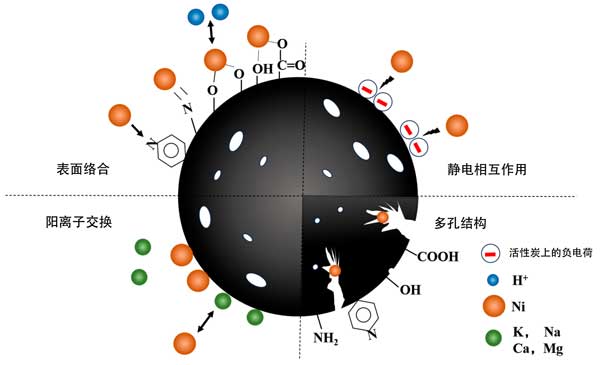 ¡¡¡¡Í¼2£ºNi(II)ÔÚ»îÐÔÌ¿ÉϵÄÎü¸½»úÀí¡£