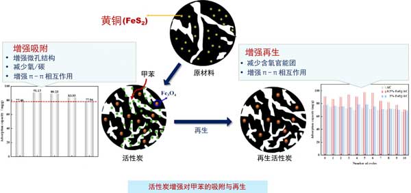 ¡¡¡¡¹ÌÓлÆÌú¿óµÄ´æÔÚΪÌáÉý»îÐÔÌ¿µÄÎü¸½ºÍÔÙÉúÄÜÁ¦ÌṩÁËÒ»ÖÖ¾¼Ã¸ßЧµÄÊֶΣ¬Õâ¶ÔÓÚ¿ª·¢¸ßÐÔÄÜ¡¢¿ÉÖØ¸´Ê¹Óõļױ½Îü¸½¼Á¾ßÓÐÖØÒªÒâÒ塣ͬʱ£¬»ÆÌú¿óת»¯¶øÀ´µÄFe₃O₄ÔÚÈÈÔÙÉú¹ý³ÌÖÐÆð´ß»¯×÷Óã¬ÓÐÖúÓÚ»Ö¸´»îÐÔλµãºÍά³Ö΢¿×½á¹¹£¬È·±£»îÐÔÌ¿ÐÔÄܵÄÒ»ÖÂÐÔ¡£