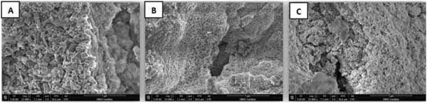 ¡¡¡¡Í¼1£ºÎü¸½(A)ïÈ(B)±µ(C)¶þÔªÎÛȾÎïºó25,000xÏ»îÐÔÌ¿µÄSEMͼÏñ¡£