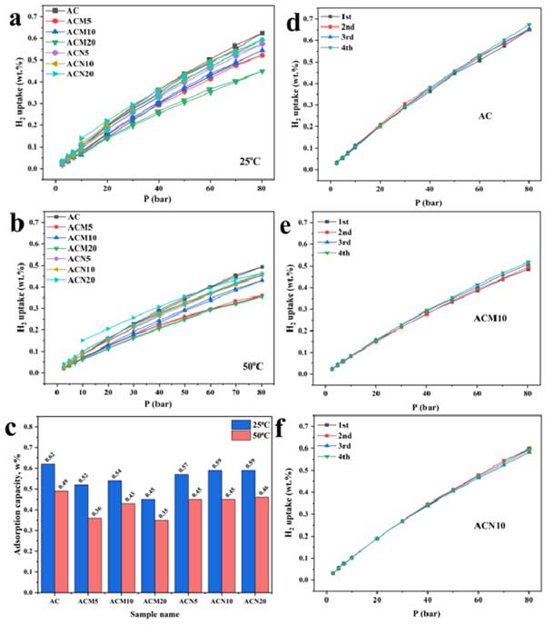 ¡¡¡¡ÇâÆø´¢´æ²ÄÁÏÔÚʵ¼ÊÓ¦ÓÃÖÐÐèÒª¾ß±¸Á¼ºÃµÄÑ»·ÐÔÄÜ¡£×÷Õß¶ÔAC¡¢ACM10¡¢ACN10µÈÑù±¾½øÐÐÁËÈô¸É´Î(ÀýÈç10´Î»ò¸ü¶à)Îü¸½–½âÎüÑ»·²âÊÔ£¬ÒÔÆÀ¹ÀÆäÎȶ¨ÐÔ¡£ÔÎÄͼ2d¡¢5e¡¢5fչʾÁËÑ»·ÇúÏß¡£