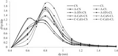 下图显示了改性活性炭的微孔尺寸分布。随着孔隙变宽,椰壳活性炭的平均孔径由于HNO 3而增加,而Ca(NO 3)2则减少。然而,煅烧表现出最大的孔径减小,因为 形成平均尺寸为0.4nm的更窄的微孔。煅烧样品显示在比那些胺化Ca的碳的微孔更好的改善(NO 3)2,其可有效地提高二氧化碳物理吸附。这可能是由于在相邻孔壁上形成更多的CaO,导致孔隙空间减少。