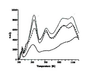 ¡¡¡¡·ÖÎö±íÃ÷25¡æÏµķ´Ó¦Ö»²úÉúºÜСµÄ±ä»¯£¬ËùÒÔÔÚµÍÎÂÏÂHNO 3ÈÜÒºÖ÷ÒªÒÔËáµÄÐÎʽ·´Ó¦£¬Ö»¶Ô»îÐÔÌ¿²úÉú΢СµÄ¸Ä±ä¡£È»¶ø£¬ÔÚ80¡æÏµĻîÐÔÌ¿·´Ó¦ÏÔʾÓëHNO 3µÄÑõ»¯×÷ÓÃÓйصÄÖ÷Òª±ä»¯£¬Èç»îÐÔÌ¿ÖÐ×ܱíÃæ»ùÍŵÄ×ÜÌåÔö¼ÓºÍôÈ»ùÀàËÆ»ùÍŵÄ×î´óÐγɡ£ÁíÍ⣬ÓÉÑùÆ·µÄ¼î¶È½µµÍ¿ÉÒÔ½âÊÍΪ6MÏõËáÈÜÒº´¦Àí3Сʱºó¼îÐÔ»ùÍŵÄÑÓ³¤Ñõ»¯µÄ½á¹û¡£Í¼2ÏÔʾÁËÕâЩ»îÐÔÌ¿µÄTPDÇúÏߣ¬¹Û²ìµ½Ð·åµÄ´æÔÚ£¬¸ø³öÁË̼µÄ»¯Ñ§×é³ÉµÄ±ä»¯£¬¼´Ñõ»¯»ùÍŵÄÔöÁ¿¡£ÏõËá¸ÄÐÔ̼µÄÔªËØ·ÖÎö±íÃ÷£¬ÓÉÆäËûÈ˹۲쵽£¬Ôö¼Óµªº¬Á¿¿ÉÒÔ¹éÒòÓÚÏõ»ù(NO 2)ÐγɵÄÓ°Ïì¡£