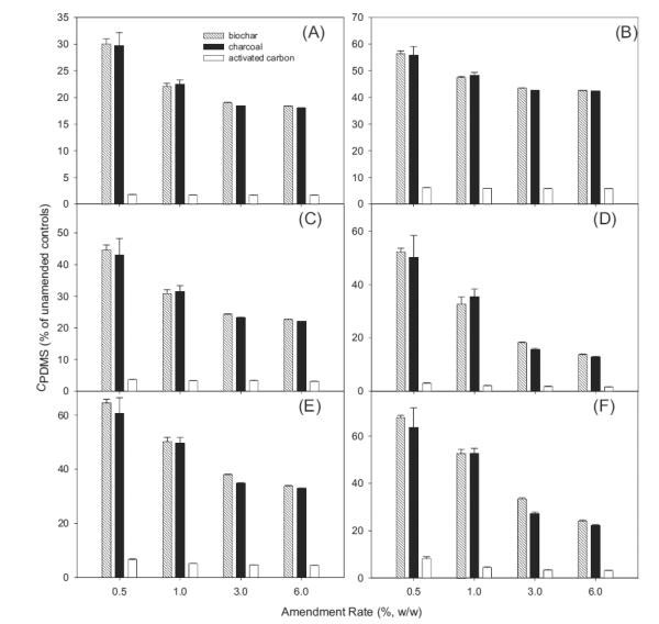¡¡¡¡ÔÚÆ½ºâʱ£¬Í¨¹ý»îÐÔÌ¿Îü¸½»ò¸ôÀëPBDEs·´Ó³ÁËËüÃÇÔÚPDMSÏËά(C PDMS)Éϼì²âµ½µÄˮƽµÄ±ä»¯¡£ÔÚJL³Á»ýÎïÖУ¬Ëæ×Å»îÐÔÌ¿ÐÞÕý£¬C PDMSÏÔ×ÅϽµ£¬²¢ÇÒ»îÐÔÌ¿µÄÀàÐÍÖ®¼äµÄ¼õÉÙ²»Í¬(ͼ2)¡£ÀýÈ磬µ±ÓÃÉúÎïÌ¿ÒÔ0.5%ÐÞÕýJL³Á»ýÎïʱ£¬C PDMS½µµÍÖÁδ³Á½µ³Á»ýÎïÖеÄˮƽµÄ30.0-67.8%¡£Ä¾Ì¿(29.7-63.5%)µÄЧ¹ûÓëÉúÎïÌ¿ÏàËÆ(ͼ2)¡£Ïà±È֮ϣ¬»îÐÔÌ¿ÐÞÕý³Á»ýÎïÖÐC PDMSµÄϽµ·ù¶È¸ü´ó(ͼ2))¡£ÀýÈ磬ÔÚº¬ÓÐ0.5%»îÐÔÌ¿µÄJL³ÁµíÎïÖУ¬¶ÔÓÚ²»Í¬µÄͬԴÎC PDMS½µµÍÖÁδ¸ÄÁ¼´¦ÀíµÄˮƽµÄ1.8-8.1%¡£Æ½¾ù¶øÑÔ£¬Ìí¼Ó1.0%µÄ»îÐÔÌ¿µ¼ÖÂËùÑ¡BDEͬϵÎïµÄC PDMS½µµÍÖÁ¶ÔÕÕˮƽµÄ1.7-5.9%£¬Õâ±íÃ÷»îÐÔÌ¿ÔÚ³Á»ýÎïÖÐòüºÏPBDEsµÄÄÜÁ¦Ô¶Ô¶¸ßÓÚÆäËûºÚ̼²ÄÁÏ¡£