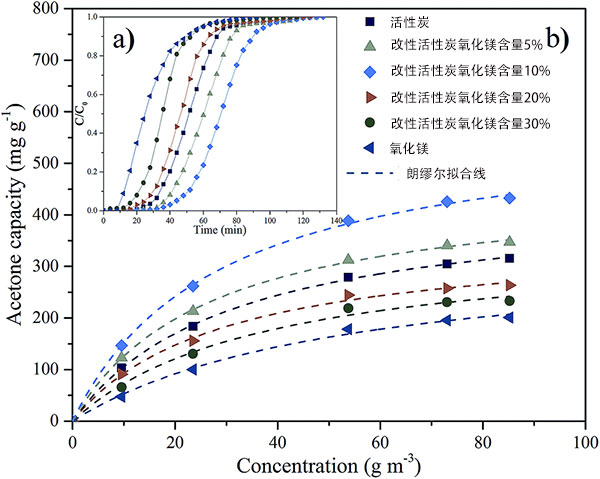 ¡¡¡¡Èçͼ4aËùʾ£¬ÁùÖÖÉøÍ¸ÇúÏߵķ¢Õ¹Ç÷ÊÆÔÚÒ»¶¨Î¶È(25¡æ)ºÍŨ¶È(85.21m3 g-1)ÏÂÊÇÒ»Öµġ£¾ßÌå¶øÑÔ£¬ÇúÏ߷dz£Îº͵ؿªÊ¼£¬¶øÒ»µ©Í»ÆÆ·¢Éú£¬Å¨¶È¾Í»á¼±¾çÔö¼Ó¡£Ëæ×Åʱ¼äµÄÍÆÒÆ£¬¹Û²ìµ½Å¨¶ÈÖð½¥Îȶ¨¡£¸ÄÐÔ»îÐÔÌ¿Ñõ»¯Ã¾º¬Á¿10%µÄÑùÆ·Îü¸½ÈÝÁ¿ÔÚËùÓÐÑùÆ·ÖÐÅÅÃûµÚÒ»¡£´©Í¸Ê±¼ä¶¨ÒåΪ³ö¿ÚŨ¶ÈΪÈë¿ÚŨ¶ÈµÄ10%ʱµÄʱ¼ä¡£Ã¿¸öÑùÆ·µÄ´©Í¸Ê±¼äÒ²²»Í¬£¬±ûͪÔÚ¸ÄÐÔ»îÐÔÌ¿Ñõ»¯Ã¾º¬Á¿10%ÖеĴ©Í¸Ê±¼ä×£¬±íÃ÷ÆäÓÅÒìµÄ±ûͪ²¶»ñÄÜÁ¦¡£