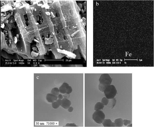 图2、SEM(a和b)和TEM(c),活性炭的图像。