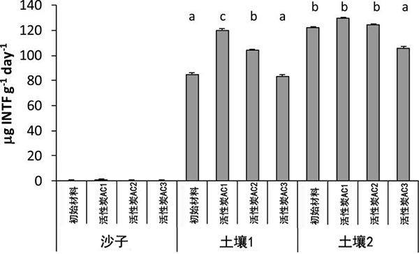 ¡¡¡¡Í¼2£ºÔÚ¾ßÓв»Í¬»îÐÔÌ¿ÐÞ¸´µÄɳ×ÓºÍÍÁÈÀÖеÄÍÑÇâø»îÐÔ¡£