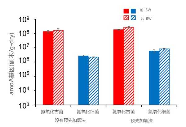 ¡¡¡¡AOAºÍAOBÓëamoA»ùÒòµÄ¶¨Á¿PCR½á¹ûÏÔʾÔÚͼ3ÖС£ÔÚÁ½¸öÑùÆ·ÖÐAOAÔÚ»îÐÔÌ¿ÉÏÕ¼ÓÅÊÆ¡£ÎÞÂÛÔ¤ÂÈ»¯£¬·´Ï´¶¼²»»áÏÔ×ÅÓ°ÏìAOA»òAOBµÄÁ¿(p> 0.01)¡£ÆäÖз´Ï´¶ÔÏõ»¯Ï¸¾úÉúÎïÁ¿µÄÓ°Ïì¿ÉÒÔºöÂÔ²»¼Æ¡£ÊµÑéÒ²Ö¤Ã÷ÒûÓÃË®³§ÖÐʹÓõĵÎÂ˳ØÉϵݱÑõ»¯¼ÁµÄ·á¶ÈÒ²²»ÊÜ·´Ï´µÄÓ°Ï죬·´Ï´²»»áʹÏõ»¯×÷Óöñ»¯¡£È»¶ø£¬·´Ï´ºó´óÁ¿Ï¸¾úÉúÎïÁ¿¼õÉÙ¶Ô΢ÉúÎïȺÂäµÄÓ°ÏìСÓÚ¶Ô΢ÉúÎïÉúÎïÁ¿µÄÓ°Ï죬ºóÕßͨ¹ý·´Ï´ÏÔ׿õÉÙ¡£»îÐÔÌ¿Éϲ»Í¬Î¢ÉúÎïµÄÉú̬λ·ÖÀë¿ÉÄÜÊDzúÉú²»Í¬½á¹ûµÄÔÒò£¬ÒòΪ·´Ï´¿ÉÄܶÔijЩÀàÐÍϸ¾úµÄÉúÎïÁ¿¾ßÓÐÇ¿ÁÒÓ°Ï죬¶ø¶Ô°±Ñõ»¯¼ÁµÄÉúÎïÁ¿Ó°Ïì½ÏС¡£