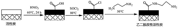 图1.乙二胺制备改性活性炭的示意图。