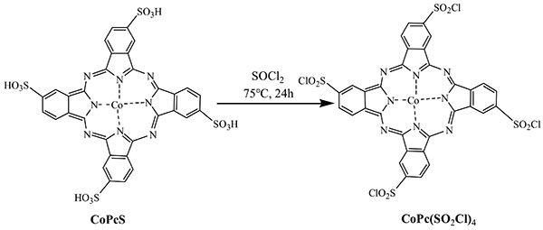 图2.通过亚砜氯化物制备改性磺化钴酞菁的示意图。
