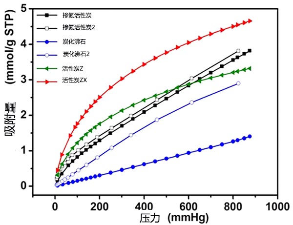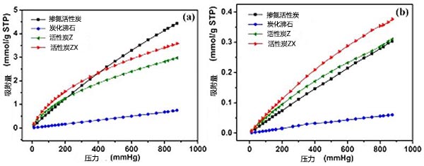 ¡¡¡¡Í¼3ÏÔʾ̿»¯·Ðʯ¶ÔCO 2ºÍN 2µÄÎü¸½±È½ÏµÍ¡£ÖµµÃ×¢ÒâµÄÊÇ£¬ ÓëÆäËûÏà±È£¬²ôµª»îÐÔÌ¿ÔÚ p > 0.5 barʱÏÔʾ³ö½Ï¸ßµÄCO 2Îü¸½£¬ÕâÖ÷Òª¹éÒòÓÚËļ«CO 2·Ö×ÓÓë²»±¥ºÍ½ðÊôλµãÖеÄÕýµçºÉÖ®¼äµÄÏ໥×÷ÓᣴËÍ⣬³ý²ôµª»îÐÔÌ¿Í⣬»¹°üÀ¨CO2ºÍN 2Îü¸½ÈÝÁ¿×ñÑ»îÐÔÌ¿Z>»îÐÔÌ¿ZX>Ì¿»¯·ÐʯµÄ˳Ðò£¬ÕâÒâζ×ÅÕâЩǰÌåÉú²úµÄµª²ôÔÓ»îÐÔÌ¿¾ßÓÐÏÔ×ŵįøÌåÎü¸½ÐÔÄÜ¡£