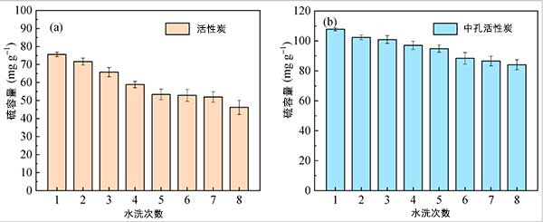 ¡¡¡¡ÎªÁ˱ȽÏˮϴÔÙÉú¶ÔÍÑÁòºó»îÐÔÌ¿ÑùÆ·µÄÓ°Ï죬Ñо¿ÁËÁòÈÝÁ¿Óë»îÐÔÌ¿ºÍÖп׻îÐÔÌ¿µÄÑ»·´ÎÊý£¬Èçͼ3Ëùʾ¡£»îÐÔÌ¿µÄ¹¤×÷ÁòÈÝÁ¿×ÜÌå³ÊϽµÇ÷ÊÆ£¬µÚÒ»´ÎÍÑÁòʱΪ75.6 mg·g-1£¬µÚ8´ÎÑ»·Îª46.2 mg·g-1£¬¼õÉÙÂÊΪ40.5%£¬ÈçÏÂͼËùʾ¡£Í¼3a¡£½á¹û±íÃ÷£¬±¥ºÍÎü¸½¼Á¶ÔH 2 SO 4µÄ²»ÍêÈ«½âÎü¶ÔÑ»·SO 2ÓÐÃ÷ÏԵĸºÃæÓ°Ïì»îÐÔÌ¿µÄÎü¸½ÐÔÄÜ¡£ÓÃÖп׻îÐÔÌ¿¹Û²ìµ½ÀàËÆµÄ½á¹û¡£È»¶ø£¬Öп׻îÐÔÌ¿µÄÁòÈÝÁ¿ÔÚ8¸öÑ»·ºó½µµÍÁË22.0%£¬Ô¶µÍÓÚ΢¿×»îÐÔÌ¿µÄ½µµÍËÙÂÊ£¬Õâ±íÃ÷»¥Á¬Î¢¿×ºÍÓÐÐò½é¿×µÄÌØÐÔ´Ù½øÁËHµÄ½âÎü¡£2 SO 4²¢¼õÉÙÁòÈÝÁ¿µÄ¼õÉÙ¡£