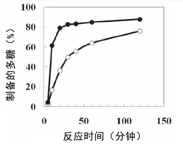¡¡¡¡Í¼1£ºÔÚ»îÐÔÌ¿´æÔÚ(ʵÐÄԲȦ)»ò²»´æÔÚ(¿ÕÐÄԲȦ)µÄÇé¿öÏÂ´ÓÆÏÌÑÌǽ¬ÖƱ¸ÄÑÏû»¯µÄ¶àÌÇ¡£