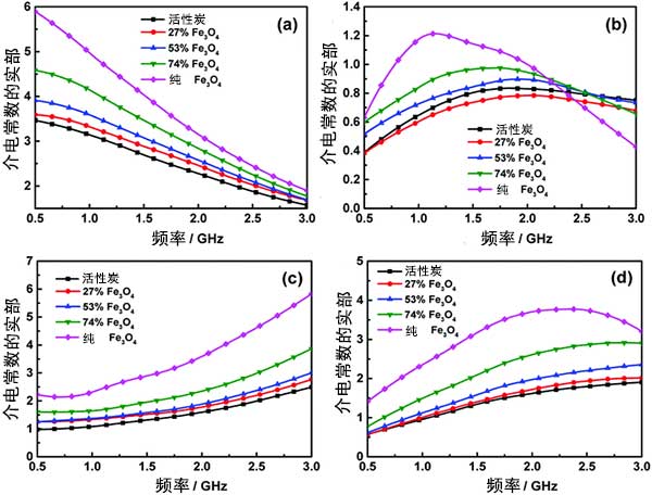 ¡¡¡¡´ËÍ⣬Ñо¿ÁË»îÐÔÌ¿¸´ºÏ²ÄÁϵĵç´Å²¨ÎüÊÕÐÔÄÜ¡£Í¼4ÏÔʾ¸´½éµç³£ÊýºÍµ¼´ÅÂÊ£¬ÕâЩµç´Å²ÎÊý¶ÔÓÚÈ·¶¨Î¢²¨ÎüÊÕ¸´ºÏ²ÄÁϵĽéµçºÍ´ÅËðºÄ·Ç³£ÖØÒª£¬²¢ÇÒÔÚÎüÊÕ¹ý³ÌÖеç´Å²¨µÄ´«ÊäºÍ·´ÉäÒ²ÊÜËüÃǵÄÓ°Ïì¡£´Óͼ6(a)ºÍ(b)ÖУ¬¿ÉÒԹ۲쵽£¬ËùÓÐÑùÆ·µÄ½éµç³£ÊýµÄʵ²¿ÓëÔö¼ÓƵÂÊ¡£Í¼6(c)ºÍ(d)ÏÔʾÁ˴ŵ¼ÂʵÄʵ²¿ºÍÐ鲿×÷ΪƵÂʵĺ¯Êý¡£¹Û²ìµ½µ±»îÐÔÌ¿µÄ¸ºÔØÁ¿µÍʱ£¬ÉøÍ¸ÂʵÄʵ²¿½öÂÔ΢Ôö¼Ó¡£