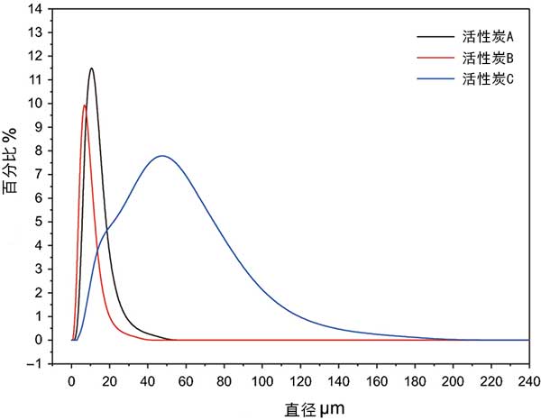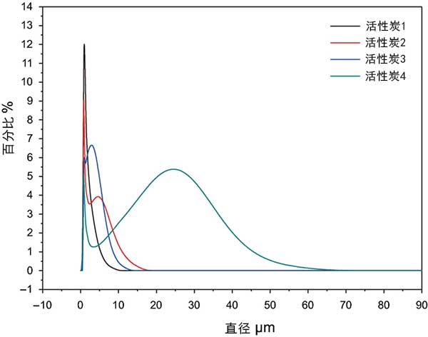 ¡¡¡¡Í¼4£º»îÐÔÌ¿×ÖĸϵÁеÄÁ£¶È·Ö²¼Í¼¡£