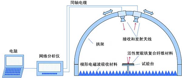 ¡¡¡¡²ÉÓù°Ðη¨Ñо¿Á˵ç´Å²¨ÎüÊÕÐÔÄÜ¡£²âÊÔ×°ÖÃÔÚͼ1ÖÐʾÒâÐÔµØÊ¾³ö¡£Ê¸Á¿ÍøÂç·ÖÎöÒÇÓë½ÓÊպͷ¢ÉäÌìÏßÏàÁ¬£¬ÆäÖÐÒ»¸ö¾ßÓÐÔöÇ¿ºÍ·¢É䯵Âʵç´Å²¨µÄ¹¦ÄÜ£¬ÁíÒ»¸ö¾ßÓнÓÊÕ·´ÉäÐźŵŦÄÜ¡£¸ù¾Ý·´À¡ÐźÅÇ¿¶È£¬»îÐÔÌ¿ÔØÌú¸´ºÏÏËά²ÄÁϵijߴçΪ180×180mm£¬ºñ¶ÈΪ2mm¡£