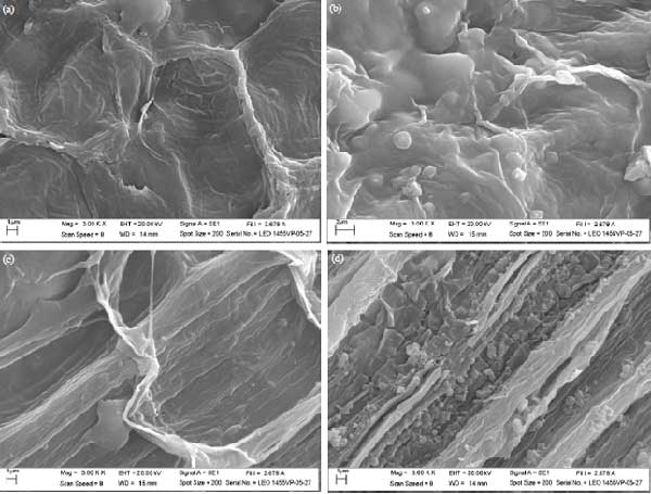 ¡¡¡¡ÈȽâµÄδ¸ÄÐÔ»îÐÔÌ¿ÏÔʾ³öÏà¶Ô¾ùÔȺ͹⻬µÄ±íÃæ£¬´øÓÐһЩÖåÎÆ(ͼ1a)¡£¿ÉÒÔ¿´³ö£¬Ëæ×ÅKMnO 4Ũ¶ÈµÄÔö¼Ó£¬ÈȽâ²úÎïµÄ±íÃæÐÎ̬¸ü¼ÓÆÆ»µ(ͼ1b- d)¡£ÓÃKMnO 4¸ÄÐÔºó£¬ÈȽâµÄ¸ÄÐÔ²úÎïµÄ±íÃæÉϸ²¸ÇÓÐС¿ÅÁ£¡£¼ÙÉèС¿ÅÁ£ÊÇMnO 2ºÍÆäËûÑõ»¯Îï¡£´ËÍ⣬»¹±íÃ÷ÈȽâµÄ¸ÄÐÔ»îÐÔÌ¿µÄ±íÃæÌî³äÓÐÐí¶à¿ÕÇ»²¢±íÏÖ³ö´Ö²Ú¶È£¬ÕâÐ©ÌØÕ÷Ëæ×ÅKMnO 4µÄÔö¼Ó¶øÔö¼Ó4Ũ¶È¡£È»¶ø£¬Ëæ×ÅKMnO 4Ũ¶ÈµÄÔö¼Ó£¬Ð¡¿ÅÁ£µÄº¬Á¿Ôö¼Ó¡£½á¹û±íÃ÷»îÐÔÌ¿µÄBET±íÃæ»ýºÍ¶à¿×Ìå»ýËæ×ÅKMnO 4Ũ¶ÈµÄÔö¼Ó¶ø½µµÍ£¬¶øÆ½¾ù¿×϶Âʳߴç³ÊÏÖ³öÂÔ΢ÉÏÉýµÄÇ÷ÊÆ¡£