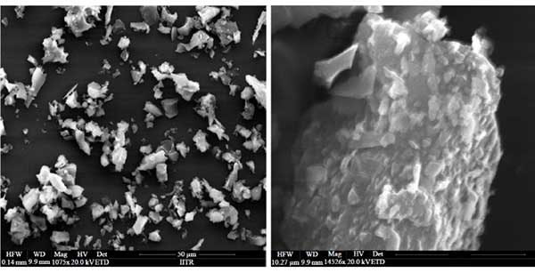 ¡¡¡¡SEM·ÖÎö£ºÍ¼1ÖÐËùʾµÄºÏ³ÉµÄ»îÐÔÌ¿·ÛÄ©µÄɨÃèµç×ÓÏÔ΢¾µ(SEM)ͼÏñÇå³þµØÏÔʾÆä¸ß¶È¶à¿×ºÍ²»¾ùÔȵÄÐÎ̬£¬Æ½¾ù¿ÅÁ£³ß´çΪ6.7μm¡£