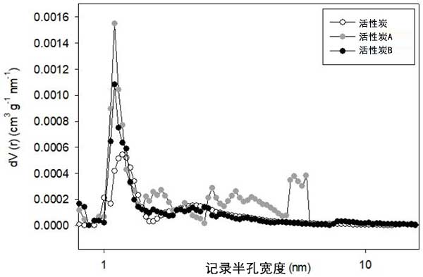 可以观察到,由于在解吸分支中形成的小磁滞回线,活性炭普遍具有微孔性,这表明毛细孔凝结很小,因此中孔的量较少。通过QSDFT方法获得这几种活性炭的总体积和孔径分布,假设孔为狭缝圆柱形。图2显示了三种研究的活性炭的孔径分布,可以确认,对于所有活性炭样品,主要存在于1.0-1.5nm区域的微孔,而对于活性炭A,也可以检测到少量的中孔。