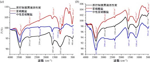 ¡¡¡¡Í¼3£ºÁ½ÖÖ²»Í¬ÔÁÏÖÆ³É»îÐÔÌ¿µÄFTIR·ÖÎö¡£