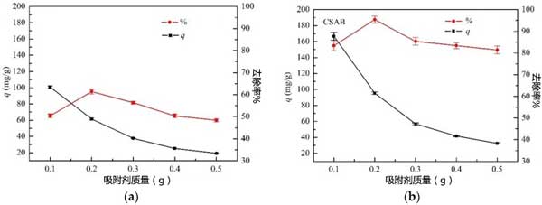 ¡¡¡¡Í¼2£ºÎü¸½¼ÁÓÃÁ¿¶Ô²ñÓÍÎü¸½µÄÓ°Ï죺(a)Ì¿»¯ÔÁÏ(b)»îÐÔÌ¿¡£
