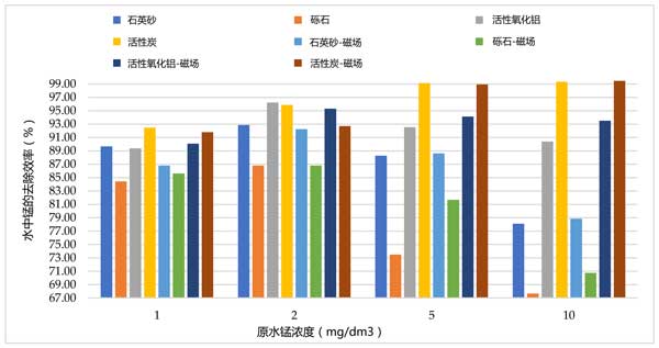 ¡¡¡¡ÔÚ×îºóһϵÁÐÊÔÑéÖУ¬×÷ΪËù½øÐеŤ×÷µÄÒ»²¿·Ö£¬Ê¹ÓÃÃÌÄ£ÐÍÈÜÒº½øÐÐÊÔÑé¡£ÔÚ¼ÆËãµÄ»ù´¡ÉÏ£¬·¢ÏÖÔÚͨ¹ý»îÐÔÌ¿µÄ¹ýÂ˹ý³ÌÖÐÓôų¡´¦ÀíµÄÑùÆ·ÖÐÃ̵ÄÈ¥³ýЧÂʸü¸ß¡£¸÷ÂË´²ÉÏÃ̺ͶÔÕÕˮ֮¼äµÄÃÌÈ¥³ýЧÂʲîÒì(ͼ3)¡£ÁíÒ»·½Ã棬´Å³¡µÄʹÓÃÔö¼ÓÁËË®µÄ±¥ºÍ¶È£¬ÆäÖÐÑõÆøÊÇMn(II)Ñõ»¯·´Ó¦ÎªMn(IV)Ëù±ØÐèµÄ¡£ÆäËûÎü¸½²ÄÁϾßÓл¯Ñ§¶èÐÔ£¬Òò´Ëͨ¹ýʹÓôų¡¶ÔË®µÄÎïÀíºÍ»¯Ñ§ÐÔÖʵÄÓ°Ïì²»»áÌá¸ßÌúºÍÃÌÀë×ÓµÄЧÂÊ¡£