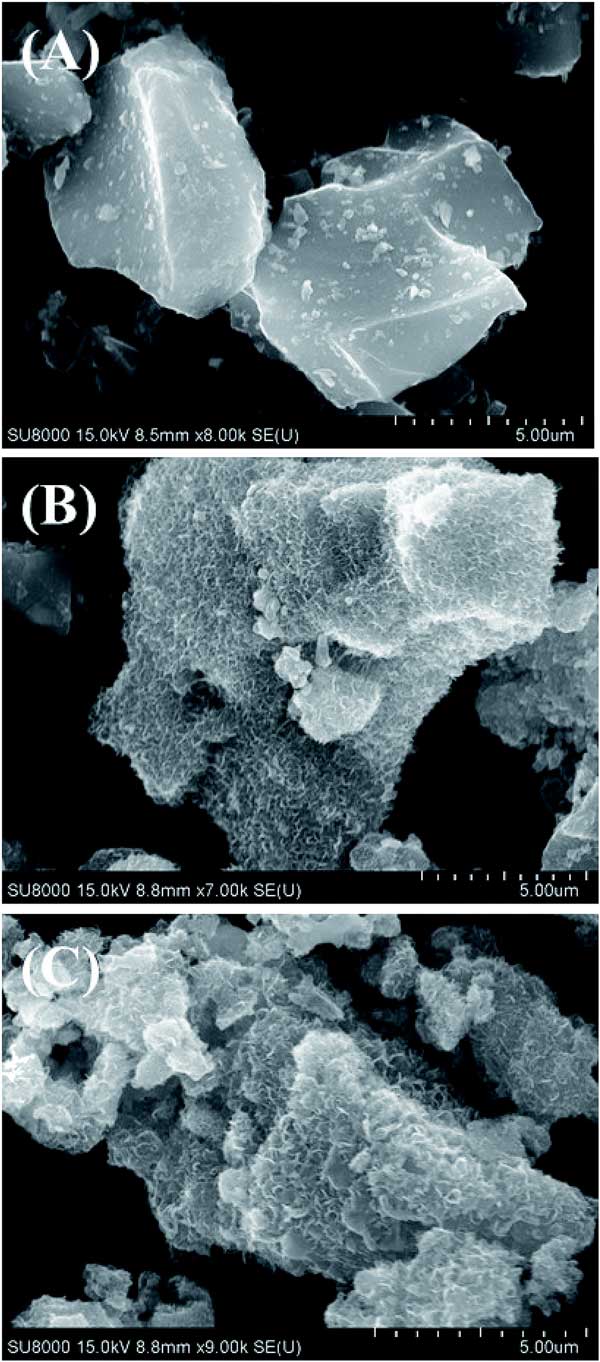 ¡¡¡¡Í¼1£ºÊÇÌúÀë×ÓÎü¸½¹ý³Ìºó¼¸ÖÖ»îÐÔÌ¿µÄSEMͼÏñ¡£
